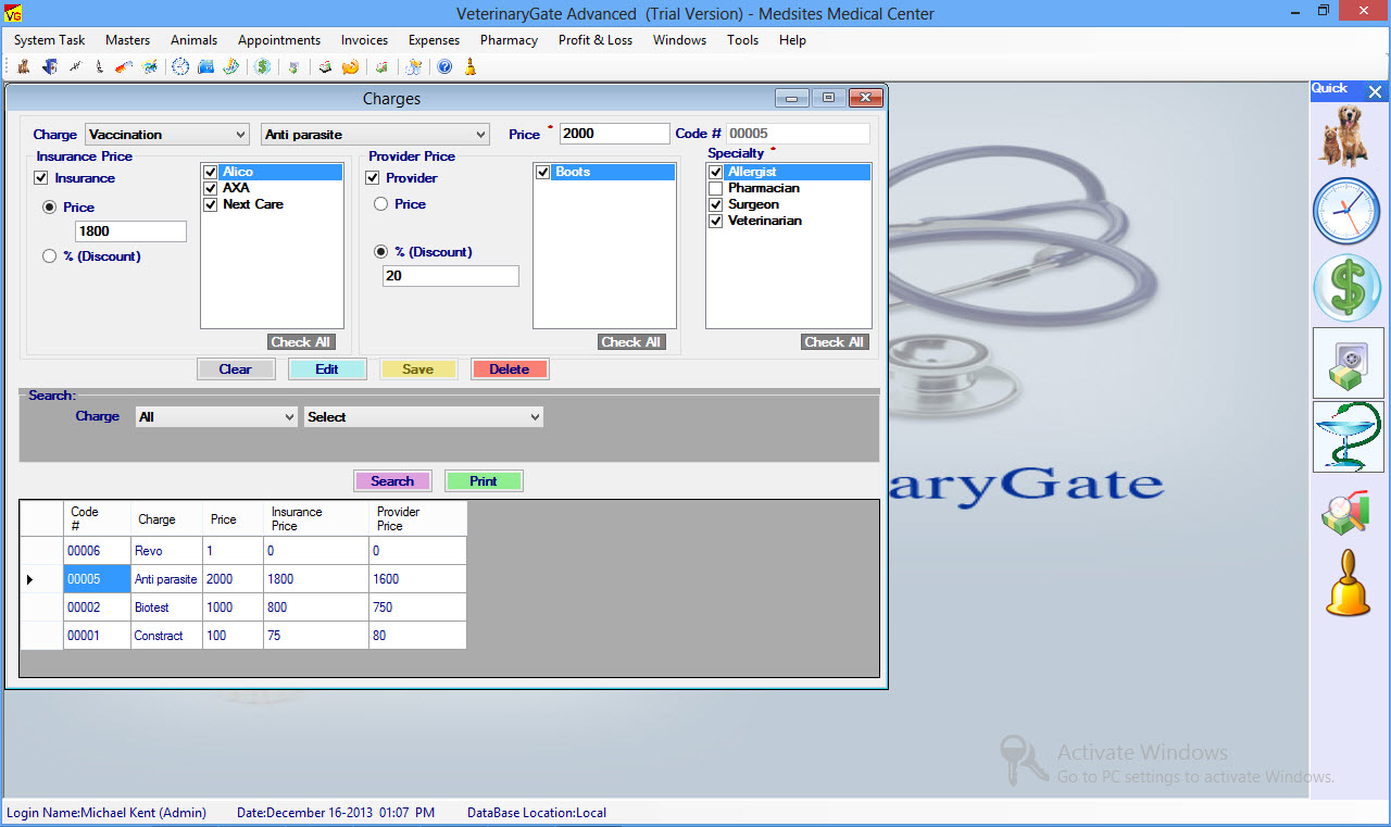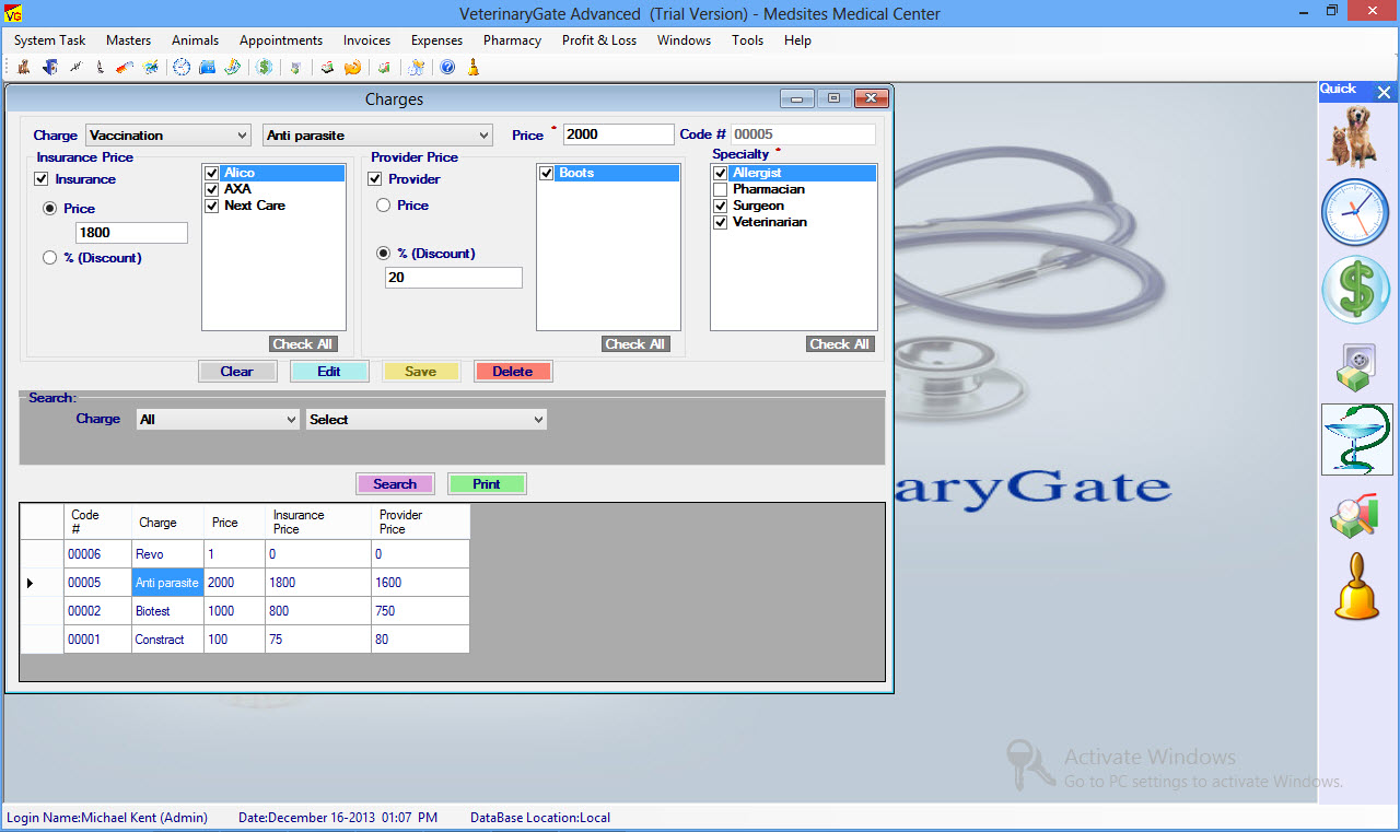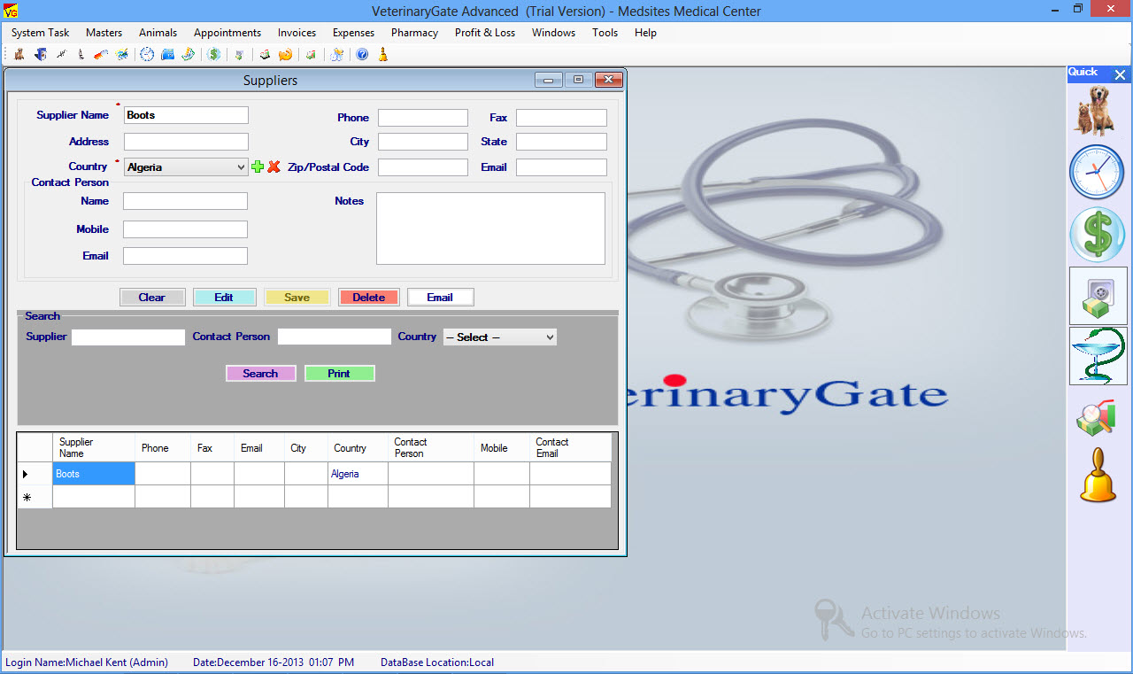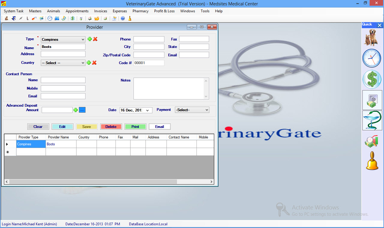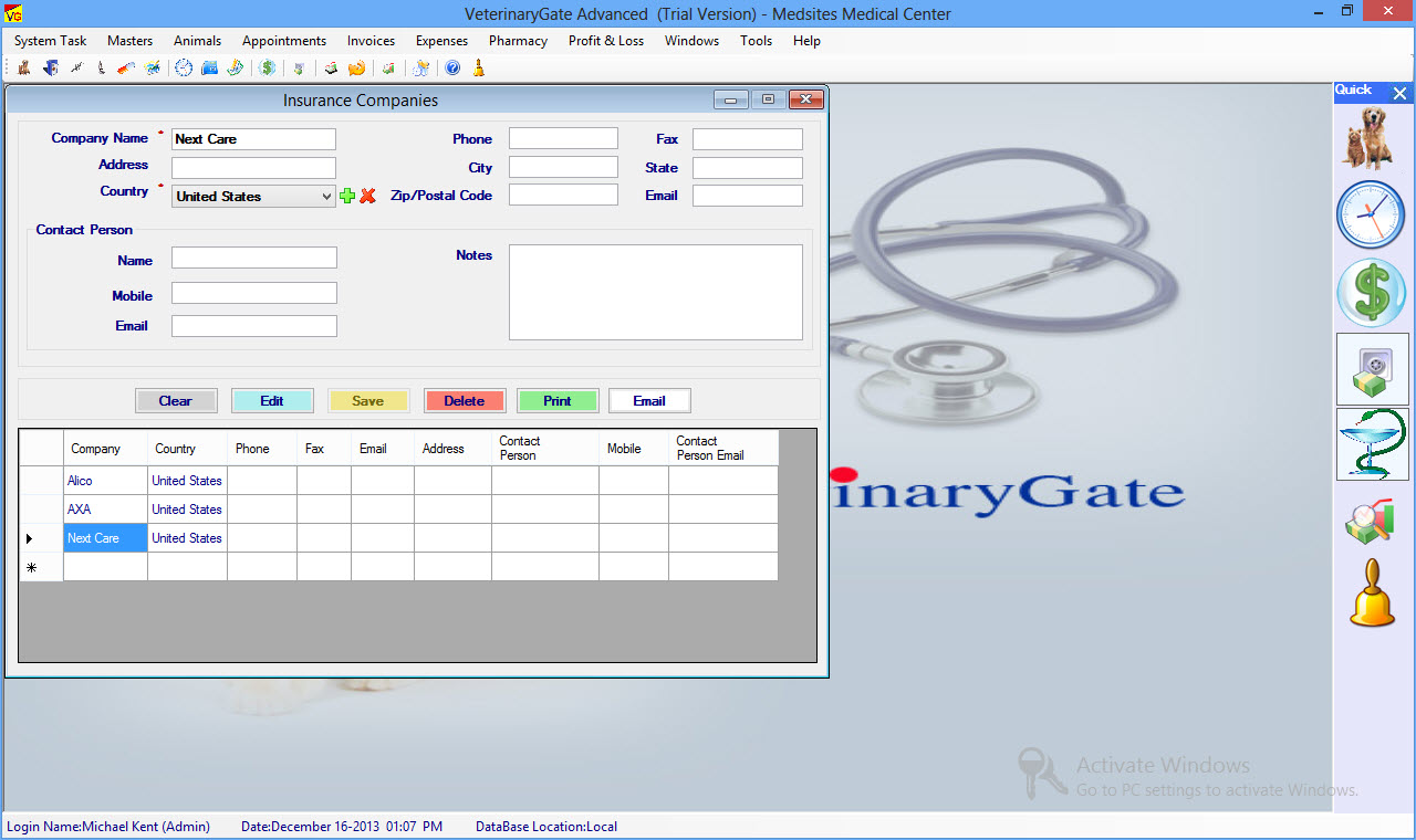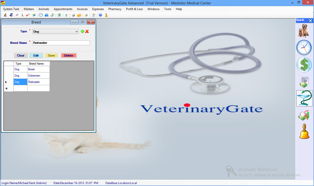 VeterinaryGate is a Veterinary Software, Veterinary Office Billing Software, Practice Management Software offers an easy to use Windows interface featuring an integration of Animal & Pet Medical Records, Appointment Scheduling, Billing, Tracking Receivables, Managing Expenses and Generating Customized Reports And Graphic Reports.